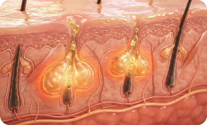 Clear+ pakt de vier interne triggers aan die uitbraken veroorzaken: talgproductie, voedingstekorten, ontstekingen en hormoonschommelingen.