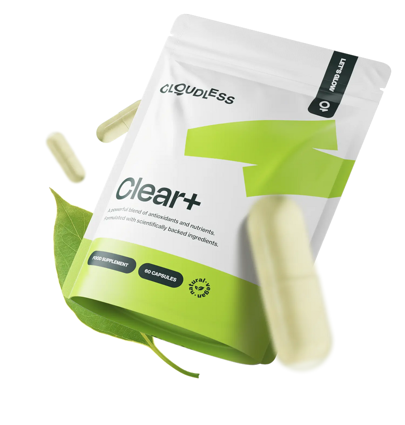 Cloudless Clear+ (voorheen ClearDay+) is een dagelijkse formule met vitaminen en antioxidanten die je huid van binnenuit ondersteunt*. Speciaal ontwikkeld voor mensen met een huid die snel onrustig reageert of gevoelig is voor puistjes. Met alleen 100% natuurlijke, krachtige ingrediënten, zorgvuldig gekozen op basis van wetenschappelijk onderzoek.